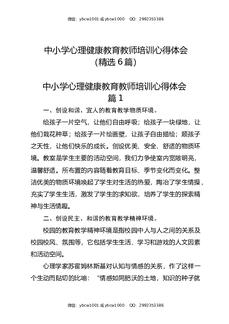 中小学心理健康教育教师培训心得体会(精选6篇).docx