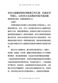 农村小规模学校科学教育工作汇报:扎根乡村守初心,以科学之光点亮农村孩子成长路.docx