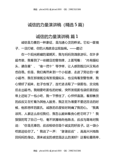 诚信的力量演讲稿(精选5篇).docx