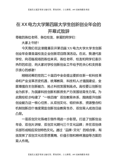 在XX电力大学第四届大学生创新创业年会的开幕式致辞.docx