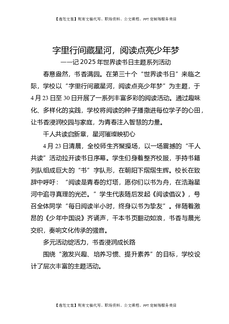 2025年世界读书日主题系列活动通讯稿.docx
