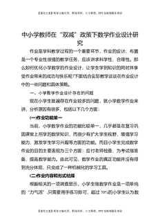 中小学教师在“双减”政策下数学作业设计研究.docx
