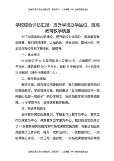 学校综合评估汇报:提升学校办学品位,提高教育教学质量.docx