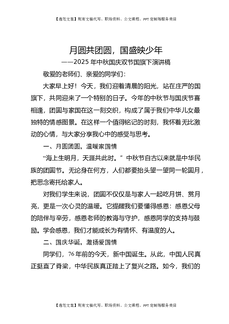 月圆共团圆,国盛映少年——2025年中秋国庆双节国旗下演讲稿.docx