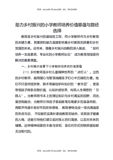 助力乡村振兴的小学教师培养价值意蕴与路径选择.docx