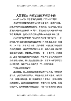 人民要论:光辉的篇章不朽的丰碑——纪念中国人民志愿军抗美援朝出国作战XX周年.docx