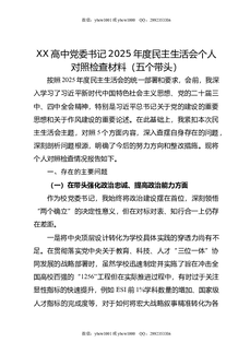 XX高中党委书记2025年度民主生活会个人对照检查材料(五个带头).doc