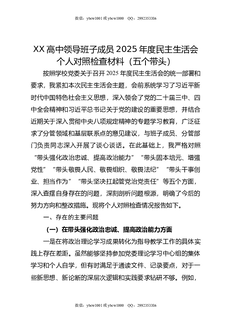 XX高中领导班子成员2025年度民主生活会个人对照检查材料(五个带头).doc