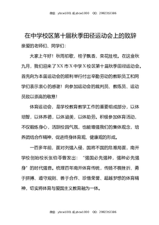 在中学校区第十届秋季田径运动会上的致辞.docx