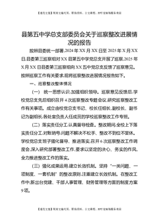县第五中学总支部委员会关于巡察整改进展情况的报告.docx