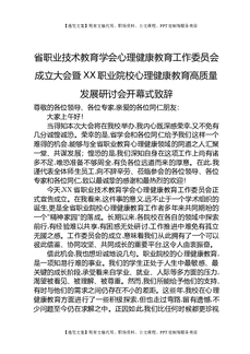 省职业技术教育学会心理健康教育工作委员会成立大会暨XX职业院校心理健康教育高质量发展研讨会开幕式致辞.docx