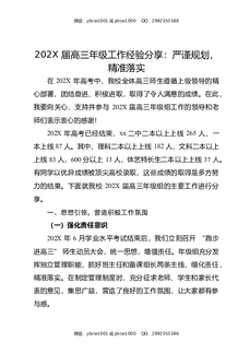202X届高三年级工作经验分享:严谨规划,精准落实.docx