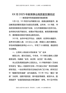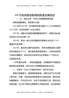 XX市加快推进教育高质量发展综述——以“奋进之笔”书写人民满意教育新答卷.docx