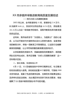 XX市多措并举推进教育高质量发展综述——努力办好人民满意的教育.docx