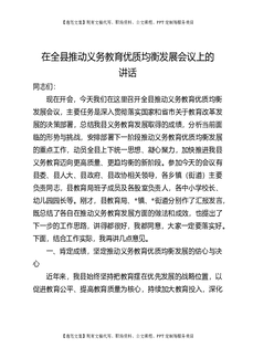 在全县推动义务教育优质均衡发展会议上的讲话.docx