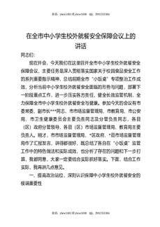 在全市中小学生校外就餐安全保障会议上的讲话.docx