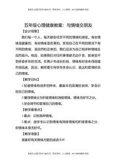五年级心理健康教案:与情绪交朋友.docx