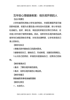 五年级心理健康教案:做乐观开朗的人.docx