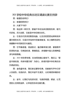 XX学校中华经典古诗文诵读比赛主持辞.doc