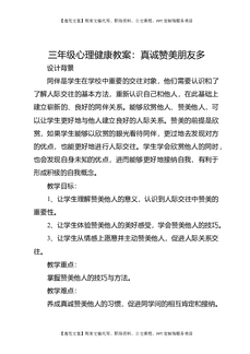 三年级心理健康教案:真诚赞美朋友多.docx