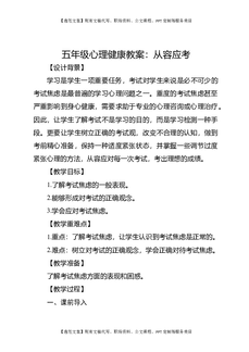 五年级心理健康教案:从容应考.docx