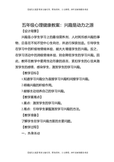 五年级心理健康教案:兴趣是动力之源.docx