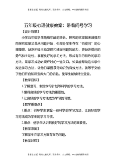 五年级心理健康教案:带着问号学习.docx