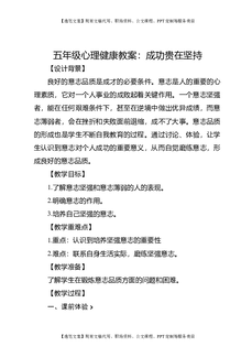 五年级心理健康教案:成功贵在坚持.docx