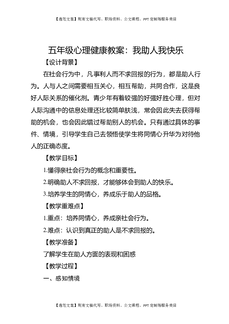 五年级心理健康教案:我助人我快乐.docx