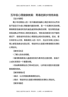 五年级心理健康教案:青春的脚步悄悄来临.docx