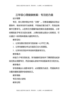 三年级心理健康教案:专注的力量.docx