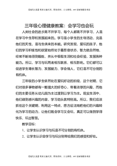 三年级心理健康教案:会学习也会玩.docx