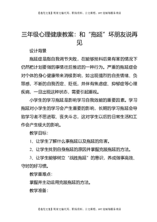 三年级心理健康教案:和“拖延”坏朋友说再见.docx