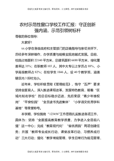 农村示范性窗口学校工作汇报:守正创新强内涵,示范引领树标杆.doc
