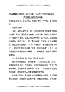 劳动教育典型经验介绍:劳动引领幸福成长,实践塑造阳光未来.doc