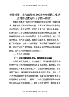 党委常委,宣传部部长2025年专题民主生活会对照检查材料(学校-高校).doc