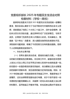 党委组织部长2025年专题民主生活会对照检查材料(学校-高校).doc