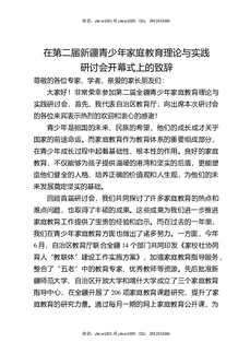 在第二届新疆青少年家庭教育理论与实践研讨会开幕式上的致辞.docx