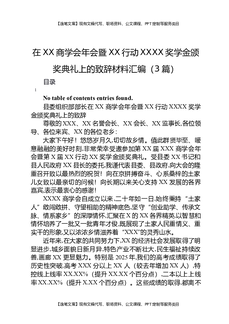 在XX商学会年会暨XX行动XXXX奖学金颁奖典礼上的致辞材料汇编(3篇).docx