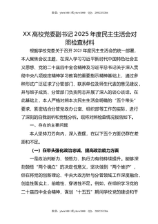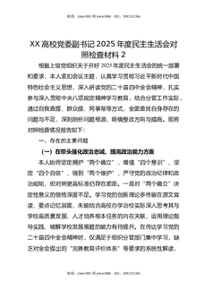 XX高校党委副书记2025年度民主生活会对照检查材料2.doc
