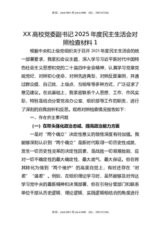 XX高校党委副书记2025年度民主生活会对照检查材料1.doc