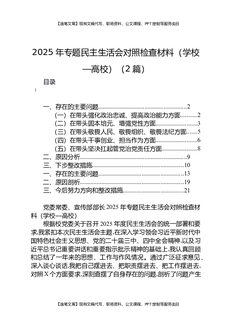 2025年专题民主生活会对照检查材料(学校-高校)(2篇).docx