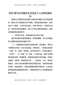 学校党委书记专题民主生活会个人对照检查材料.docx