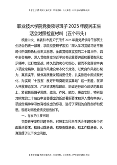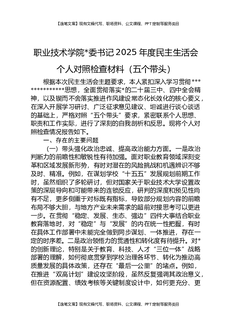 职业技术学院党委领导班子2025年度民主生活会对照检查材料(五个带头).docx