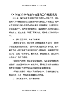 XX学校2026年度学校体育工作开展情况.doc