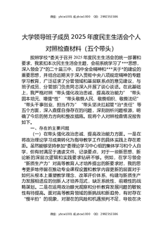 大学领导班子成员2025年度民主生活会个人对照检查材料(五个带头).docx