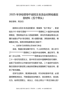 2025年学校领导干部民主生活会对照检查发言材料(五个带头).docx