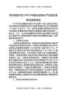 学校党委书记2025年落实全面从严治党主体责任述职报告.docx