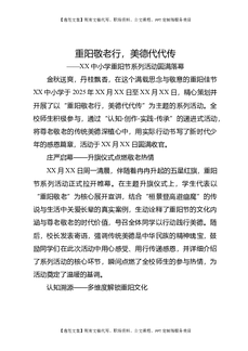 重阳敬老行,美德代代传——XX中小学重阳节系列活动圆满落幕.doc