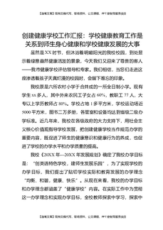 创建健康学校工作汇报:学校健康教育工作是关系到师生身心健康和学校健康发展的大事.docx